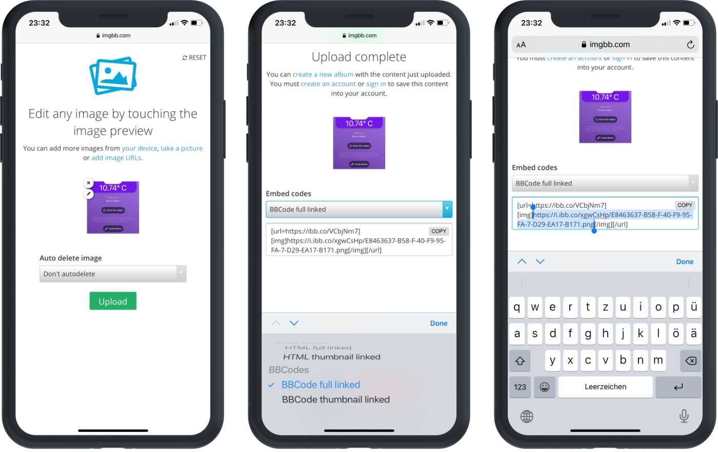 • choose the option "BBCode full linked" in the "Embed codes" menu